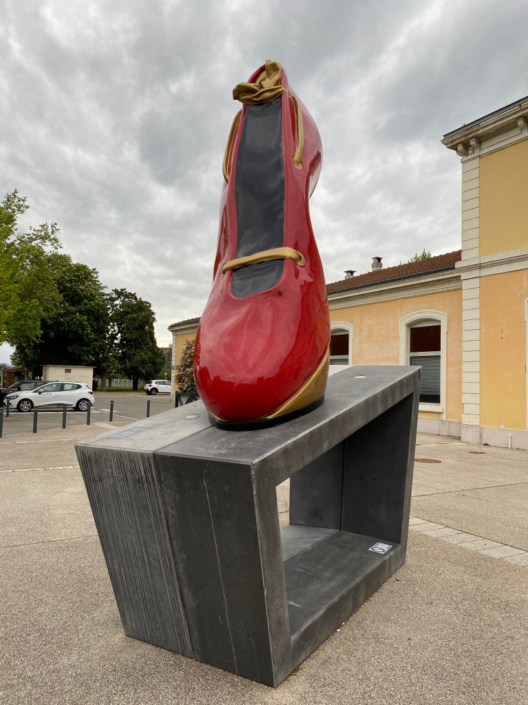 Savez-vous que la ville de Romans-sur-Isère est la capitale de la chaussure ? Je l’ai appris quand j’ai commencé mon stage en Janvier lorsque j’arpentais la ville pour me rendre au bureau. Ce sont les chaussures géantes à travers la ville qui m’ont ouvert l’esprit sur ce sujet. Bon allez, je vous emmène avec moi pour savoir le pourquoi du comment, Romans est la ville de la chaussure. Depuis le XV ème siècle, les fabricants de chaussures sont très prisés pour leur qualité, mais aussi pour le dessin, la peausserie jusqu’au produit fini. C’est dans l’ouest de la ville que les tanneurs et mégissiers préparaient les peaux des ovins et des bovins de la région et les tannaient avec des écorces de chênes et de châtaigniers des forêts voisines. Il s’agissait alors d’une production artisanale. Le travail de la chaussure s’appuie sur des savoirs faire ancestraux. Depuis l’ère de l’industrialisation dans la seconde moitié du XIXe siècle après l’arrivée du chemin de fer et la mécanisation permet une production de masse et la possibilité d’exporter des produits fabriqués. De grandes maisons comme les entreprises Fenestrier et Jourdan prennent leur essor à la Belle Époque en exportant à l’étranger, du Japon aux États-Unis. Les périodes de crise alternent cependant avec des périodes de prospérité. En 1921, on compte 6000 actifs dans le cuir sur l’agglomération et en 1964 encore 5000. Cependant, le nombre d’entreprises est passé à 200 au début des années 1950 à 80 en 1964. Les moyennes et grandes entreprises se maintiennent mais pas les petites structures familiales. L’orientation est toujours définie vers une chaussure de luxe et de qualité comme avec l’entreprise Kelian fondée en 1960. Grâce à son histoire et son savoir-faire, Romans a implanté depuis de longues années un centre d’apprentissage devenu lycée des métiers du cuir de la région Rhône-Alpes qui propose des formations en maroquinerie et chaussure. Encore un savoir-faire Français que beaucoup ont oublié, rien à voir avec vos chaussures fabriquées en Chine pour pas cher, nous avons face à nous, un réel savoir-faire et connaissance du cuir et des matériaux propres à la fabrication de la chaussure.